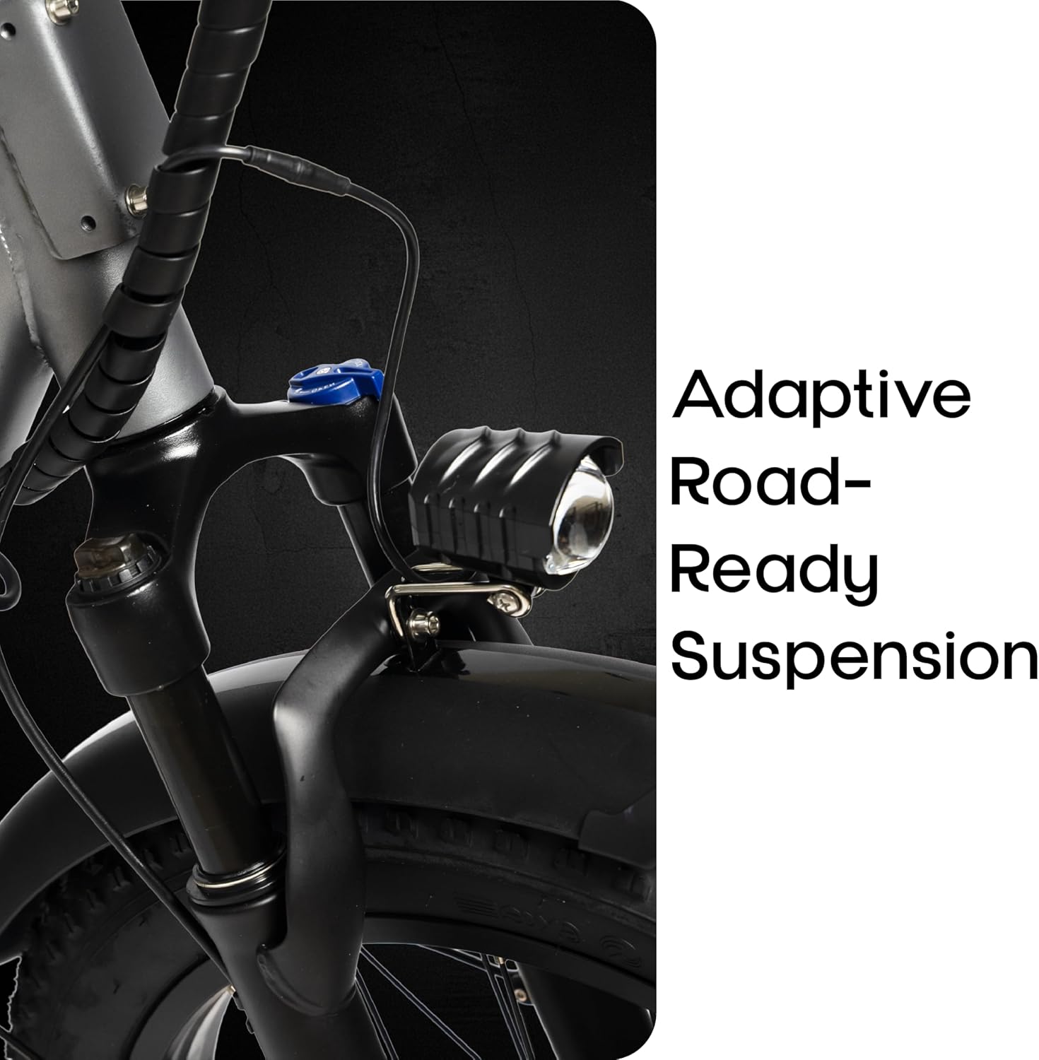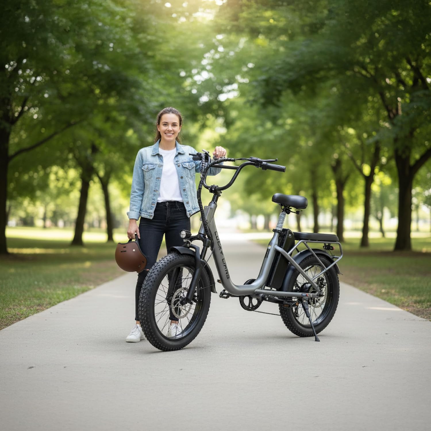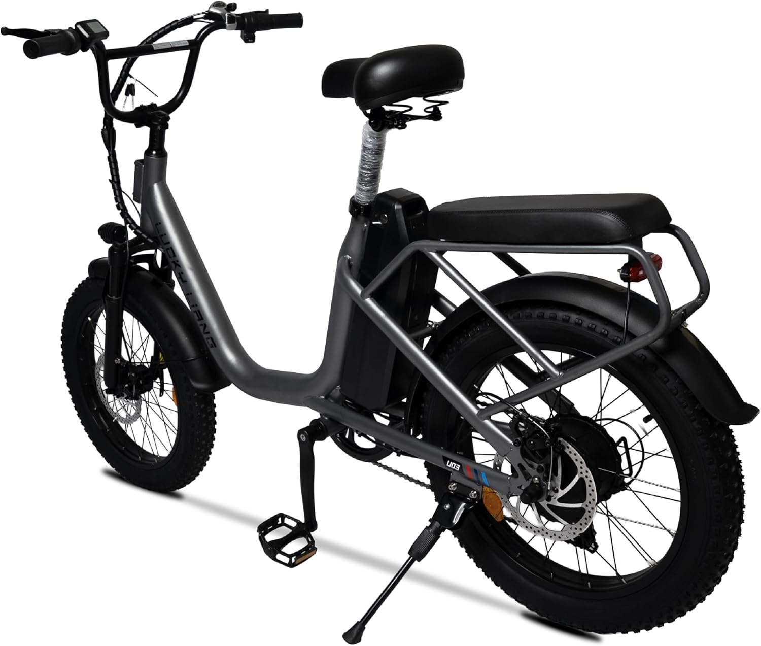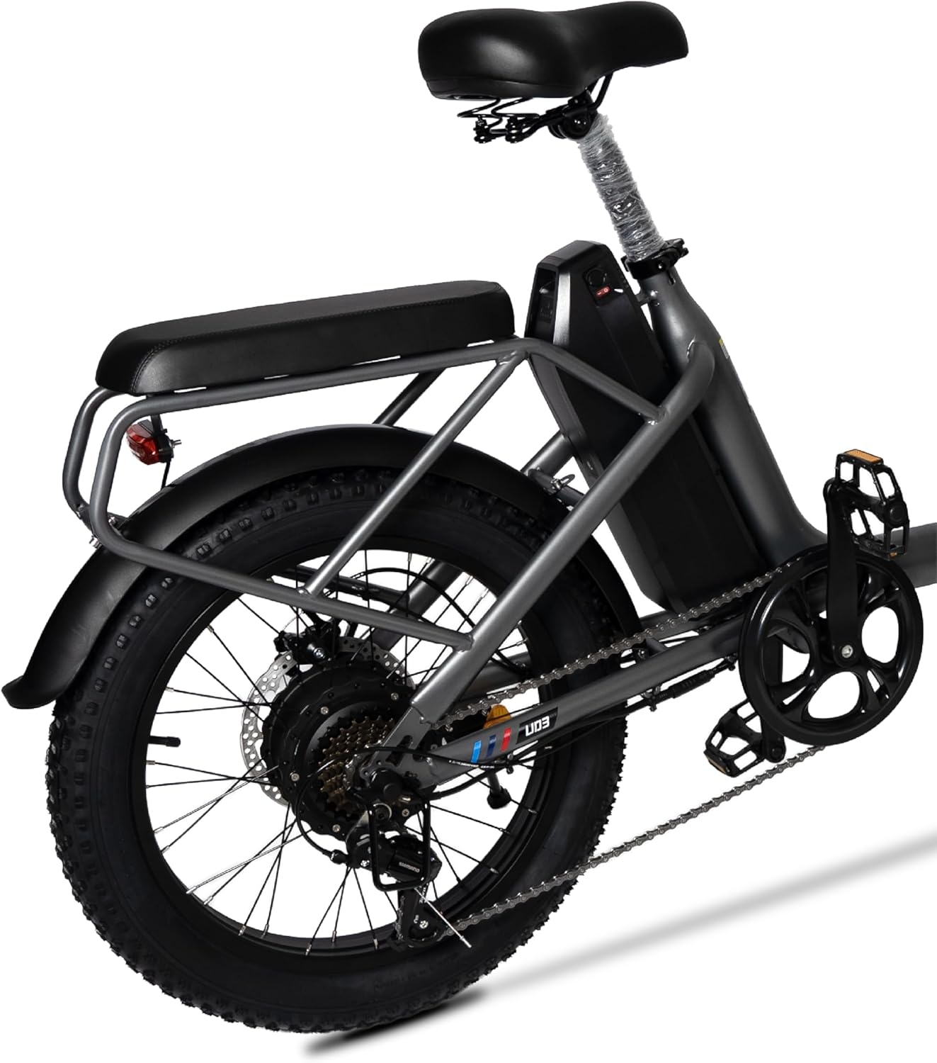 Designed with a robust carbon steel frame, the U03 electric bike offers excellent stability and long lasting strength. Its 20 inch by 3.0 inch off road tires ensure outstanding grip and control on gravel, dirt paths and uneven terrain. With a top speed of 45KM/H and a loading capacity of 120KG, this bike supports confident and comfortable riding for all types of users.
