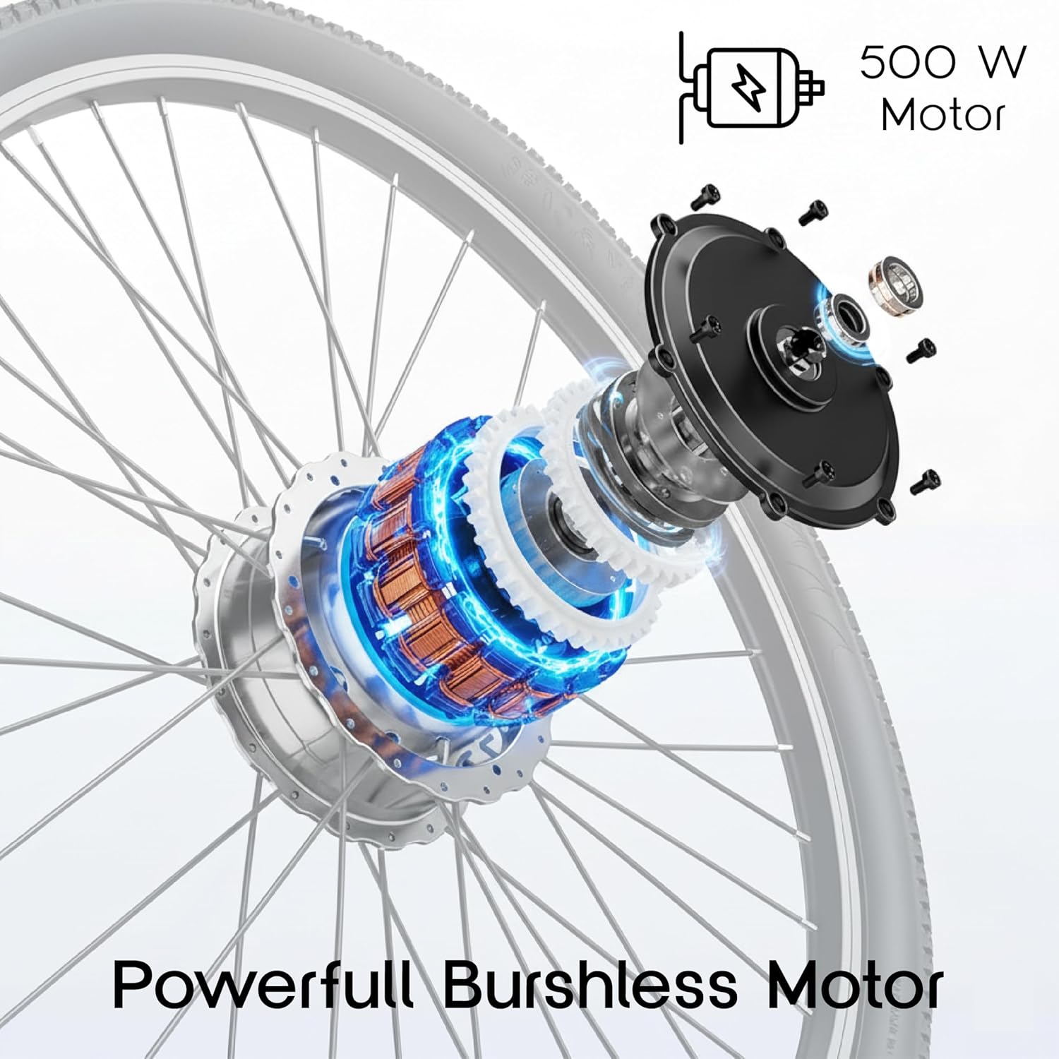 • Powerful 500W Motor (750W Peak): High-performance brushless motor for efficient power and acceleration.